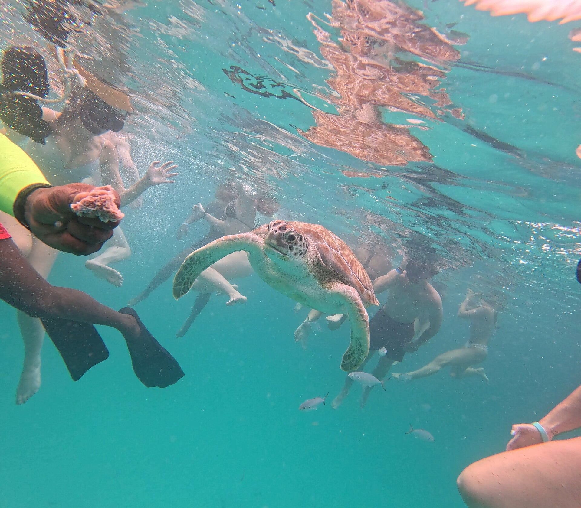 Our first stop was for some snorkelling over a wreck. The ladies decided they would stay on board to enjoy the lashings of wine the bar steward was pouring down their necks, whilst Guy & I took the plunge. Go Pro in hand, I swam out to the wreck and what greeted me below, was thousands of fish swimming majestically! And if that wasn’t enough, a beautiful and prehistoric turtle put in an appearance! I suspect being fed by guides from the multitude of boats was a great incentive for him to appear, however I was mesmerised by how close and friendly it was. I got some great footage on the Go Pro which you can see on my video.